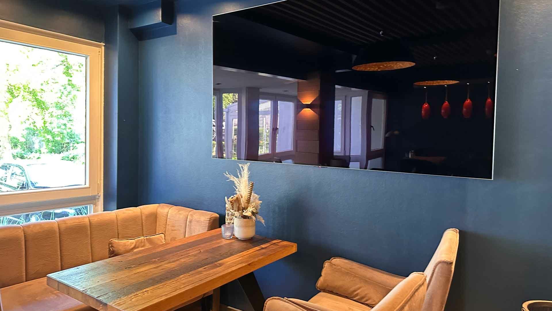 Lecker Frühstücken, Selfservice-Theke/-Kühlschrank, großer TV und ca. 80 super gemütlichen Sitzgelegenheiten.
