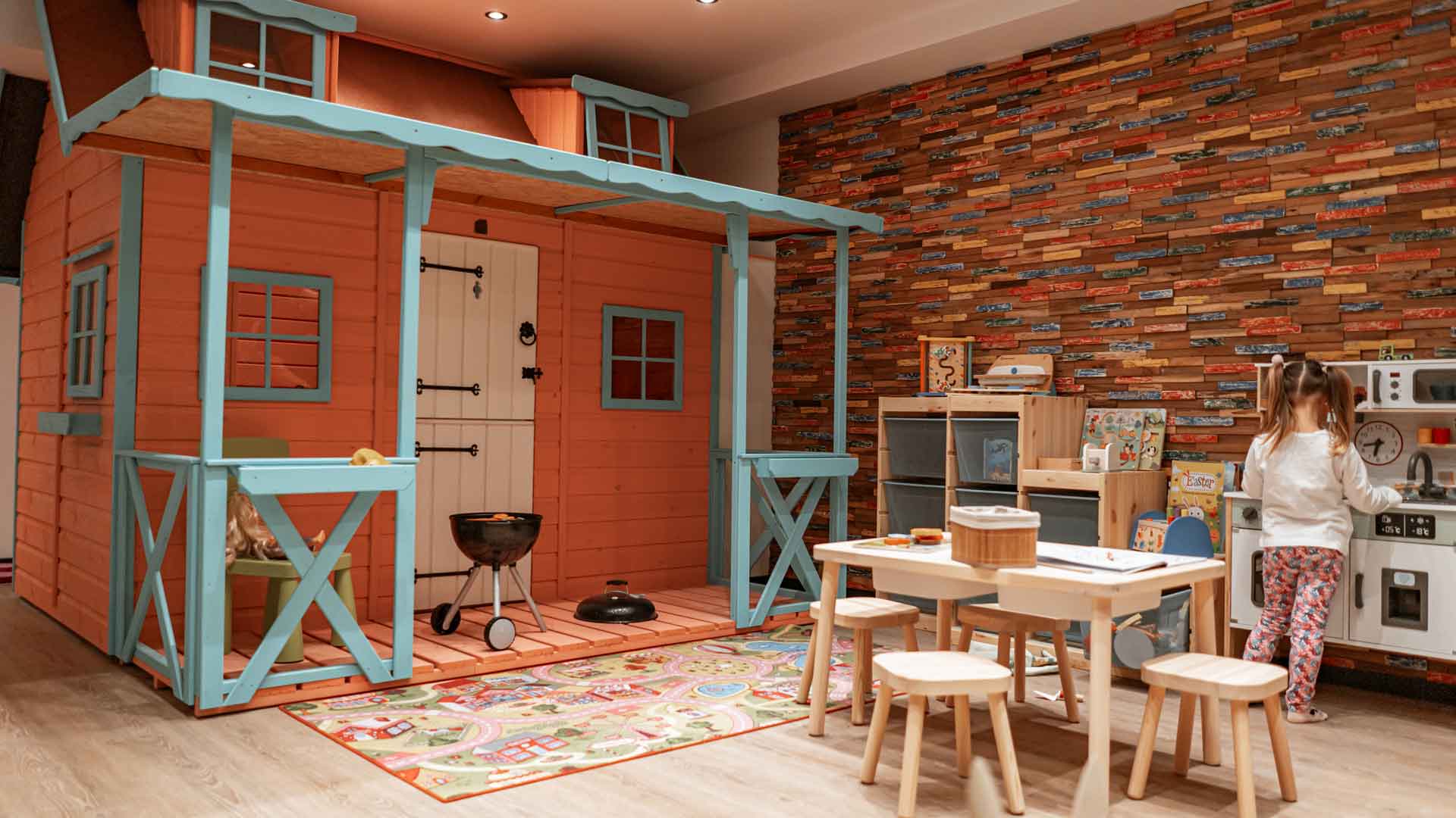 Super süß ausgestatteter IndoorSpielplatz für Kids & Friends, angrenzend an Sportsbar & Lounge. Entspannung für alle 24/7.