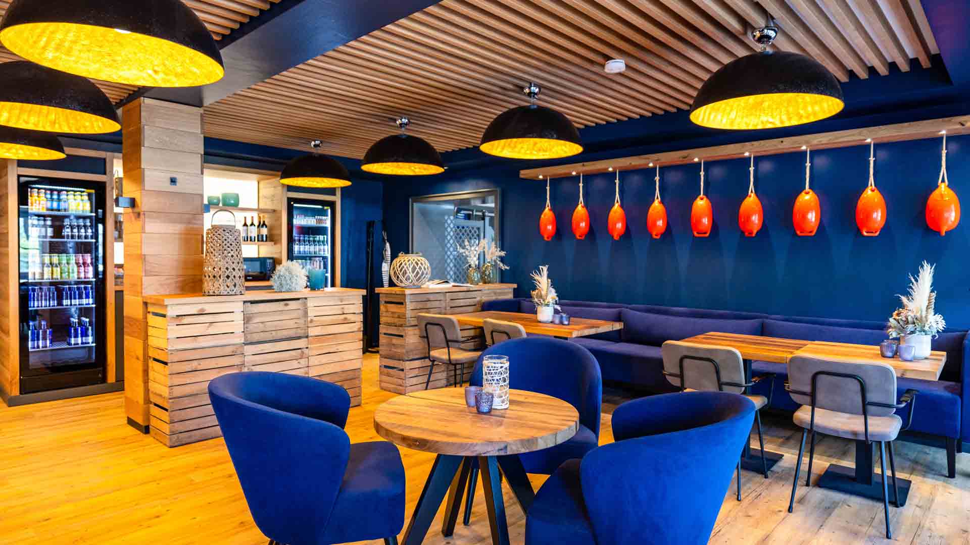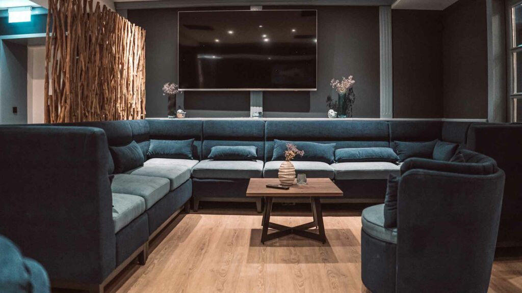 Unsere große Lounge empfängt Euch 24/7 mit eisgekühlten Drinks und super gemütlichen Sitzgelegenheiten. Hier startet Ihr mit leckerem Frühstück in den Tag und Euren Lieblings-Absackern in die Nacht.
